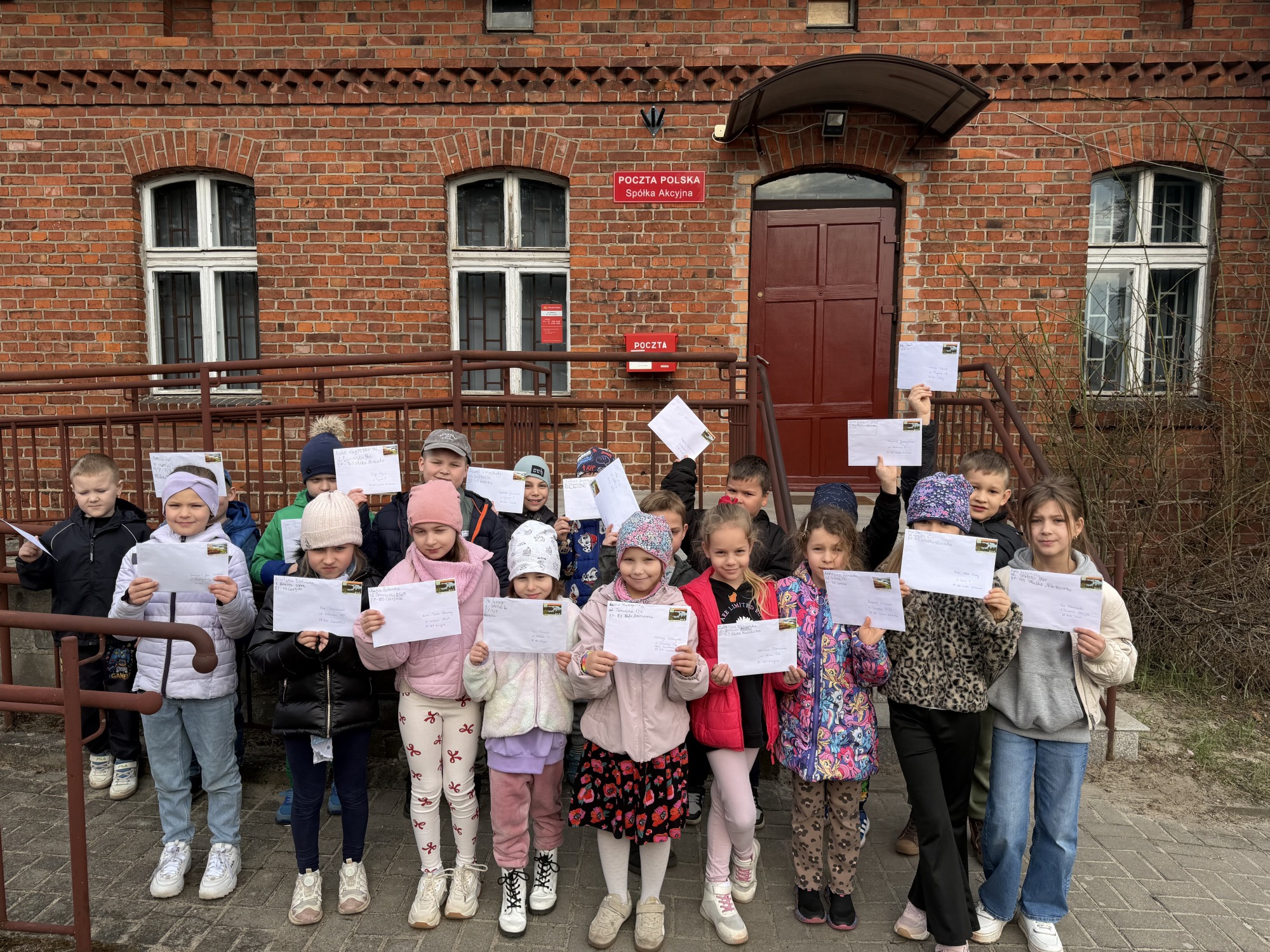 Zdobytą wiedzę mogły wykorzystać w praktyce – podczas wizyty na poczcie każdy uczeń miał okazję samodzielnie wysłać swój list. Było to ciekawe i bardzo wartościowe doświadczenie, które przybliżyło dzieciom funkcjonowanie poczty oraz pokazało, jak wygląda droga listu od nadawcy do adresata.