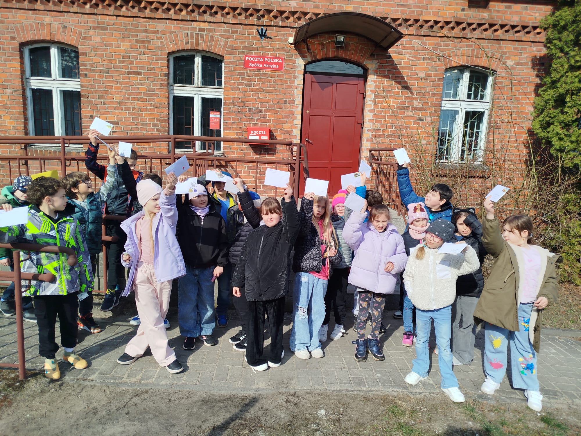 Dnia 19 marca uczniowie klasy 2 wybrali się na wycieczkę na pocztę, aby wysłać swoim najbliższym kartki świąteczne. Dzieci napisały życzenia, zaadresowały koperty oraz ozdobiły kartki, wkładając w to dużo serca i kreatywności. Była to doskonała okazja, aby połączyć naukę z praktycznym działaniem oraz sprawić radość rodzinie i przyjaciołom. Wyjście na pocztę było również ciekawą lekcją na temat funkcjonowania placówek pocztowych i zasad wysyłania przesyłek.