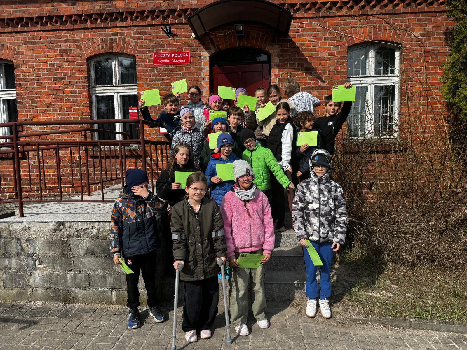 Uczniowie klasy 3 odwiedzili urząd pocztowy, aby z bliska poznać jego funkcjonowanie. Wycieczka była podsumowaniem wcześniejszych zajęć, podczas których dzieci przypomniały sobie zasady pisania listów, a także ćwiczyły poprawne adresowanie kopert i umieszczanie znaczków.