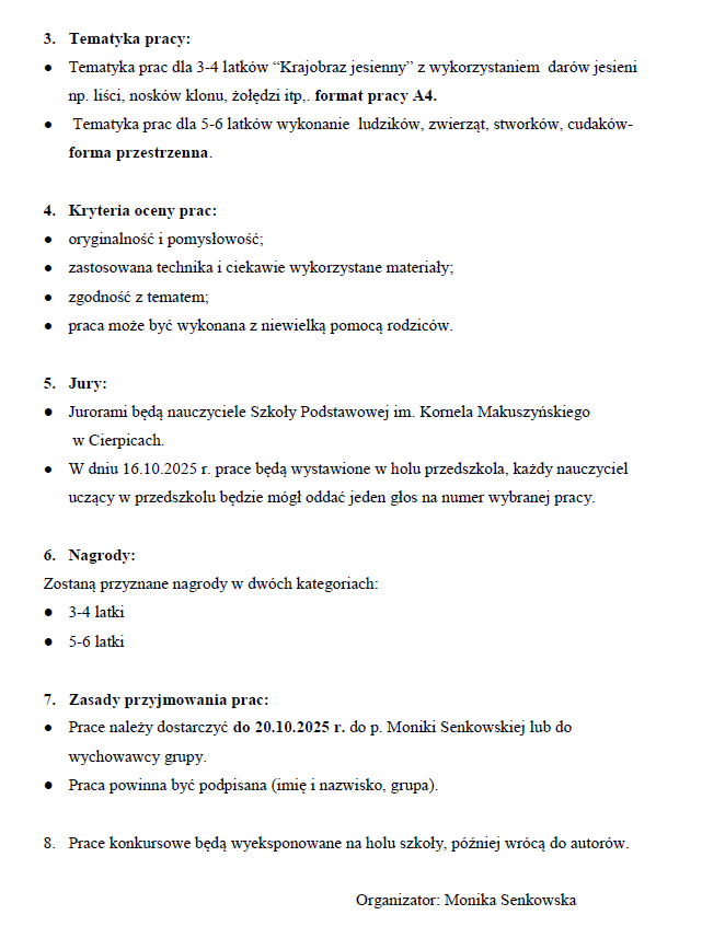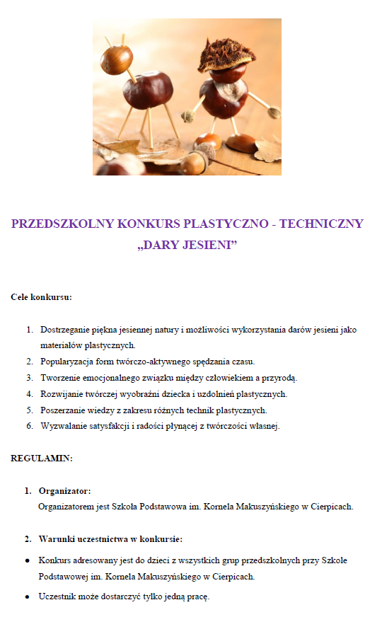 PRZEDSZKOLNY KONKURS PLASTYCZNO-TECHNICZNY "DARY JESIENI"
