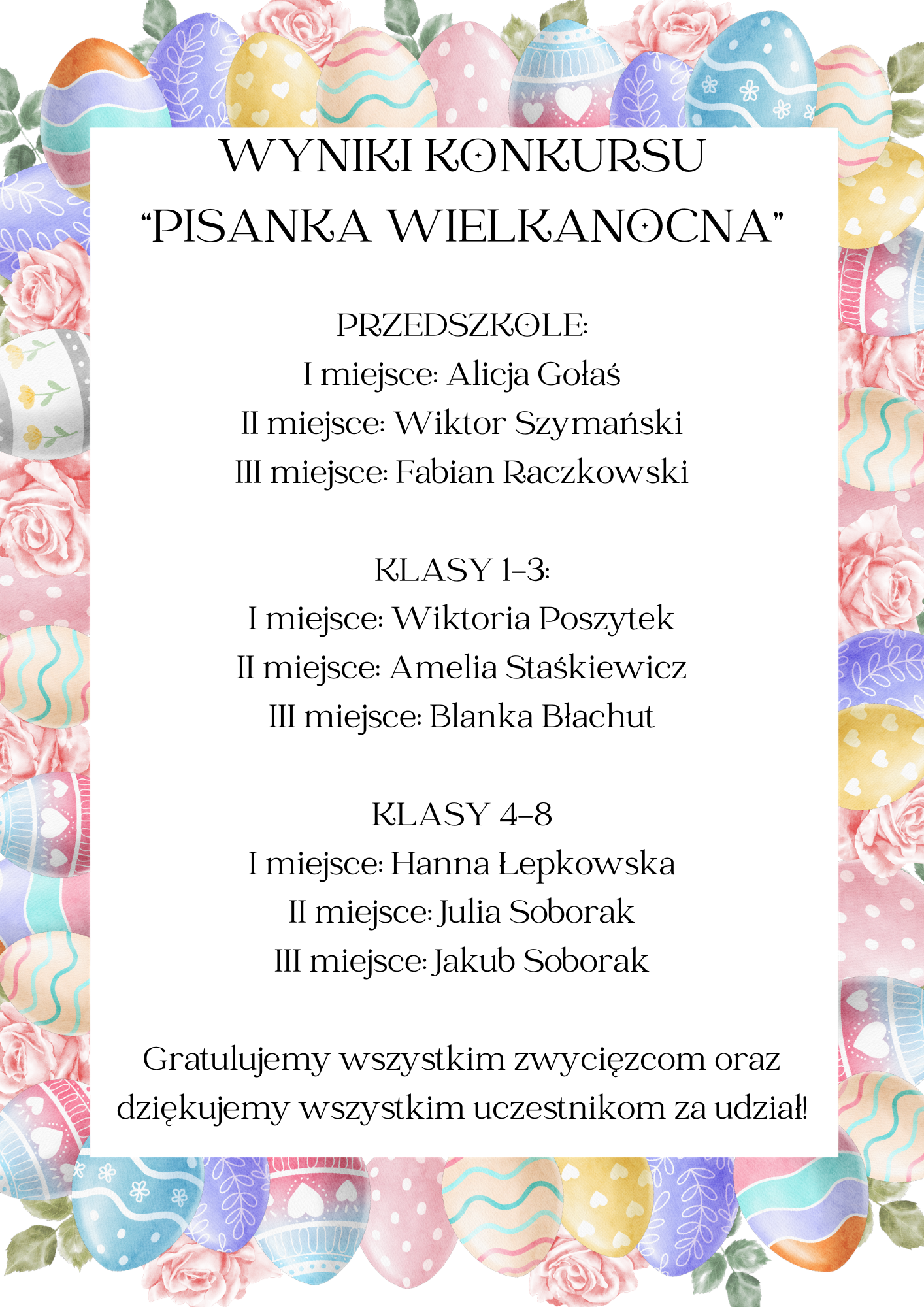 WYNIKI KONKURSU PISANKA WIELKANOCNA