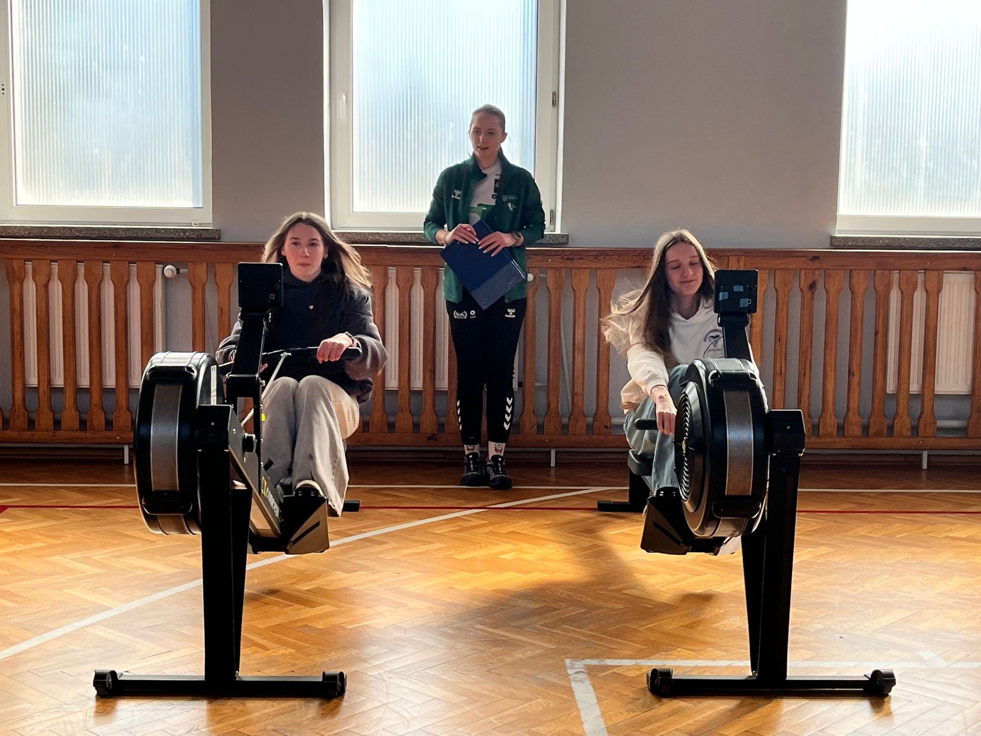 Dziś odbyły się zajęcia pokazowe z wioślarstwa, w których uczestniczyła klasa 8a. Uczniowie mieli okazję poznać podstawy tej pięknej dyscypliny sportu oraz spróbować swoich sił na ergometrach wioślarskich.